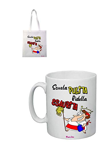 Regali Pazza idea tazza 8x10 + borsa poliestere 34x39 scritta bidella esaurita scuola regalo