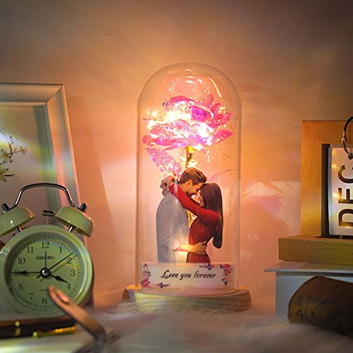 Regali personalizzati per San Valentino per lei, foto personalizzata eterna rosa in vetro regalo per mamma, fiore di rose con luci in cupola di vetro, regali per donne, moglie, festa della mamma