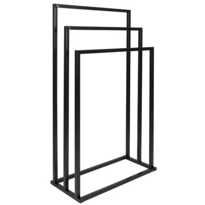 Spatio perfettamente organizzato Il portasciugamani a 3 bracci della Springos ti permetterà di ottimizzare lo spazio nel bagno. Grazie all'apposito supporto, potrai ordinare il tutto in un attimo. Il portasciugamani di colore nero è estremamente elegante e pratico. La base stabile previene ribaltamenti. Parametri: Materiale: metallo Altezza totale: 84 cm Larghezza totale: 45 cm Profondità totale: 21,5 cm Distanza tra le barre: 6,5 cm Diametro dei tubi: 16 mm Altezza fino alla barra superiore: 84 cm Altezza fino alla barra mediana: 74 cm Altezza fino alla barra inferiore: 64 cm Carico massimo per la barra: 2 kg Carico massimo totale: 6 kg Piegabilità: prodotto da montare autonomamente Codice prodotto: HG0019