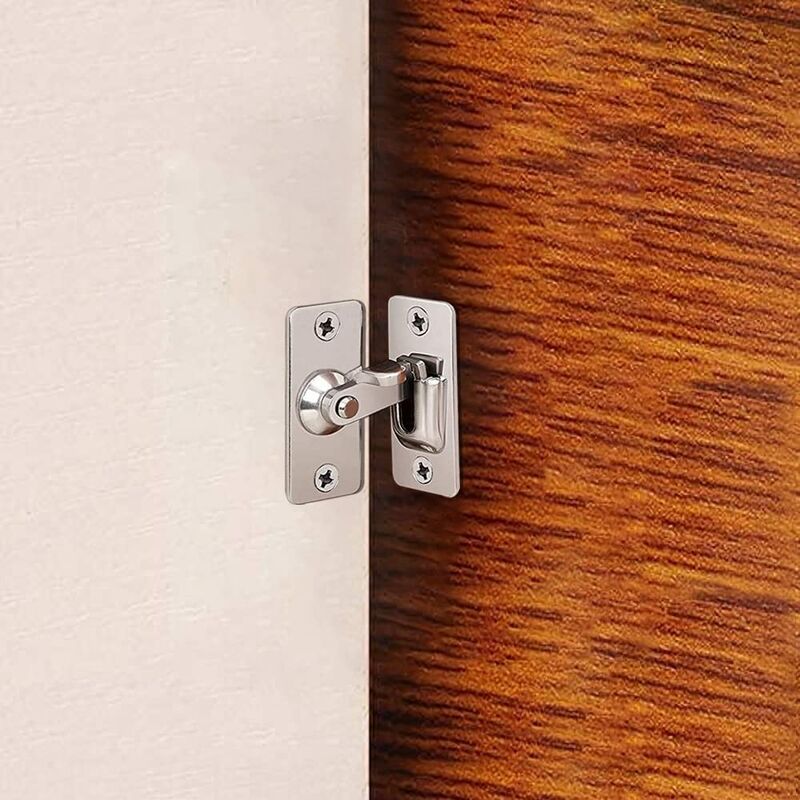 Blocco ad angolo retto di 90 gradi L'aspetto è raffinato, conciso, sigillato, saldato, la base è ispessita e rinforzata, non è facile da rompere e deformare ed è durevole. Compreso l'hardware di installazione, si prega di controllare attentamente le dimensioni del prodotto prima dell'acquisto. Formato: 44 x 19 mm/1,73 x 0,75 pollici, spessore: 1,5 mm/0,059 pollici. Il comodo design delle alette e le serrature a chiavistello sono installati su porte e finestre per impedire efficacemente l'ingresso di estranei. Fornisci maggiore sicurezza e rendi il tuo ambiente di vita più confortevole. Le serrature a chiavistello sono adatte per la maggior parte delle porte di famiglia, camere da letto, cancelli, garage, giardini, bagni, armadi, cucine, uffici, hotel, ecc., per risparmia spazio e mantieni lo spazio in ordine.