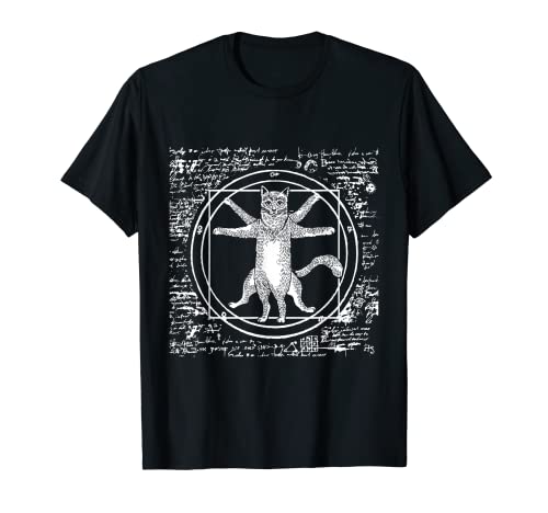 Regalo amante dei gatti vitruviani Leonardo Da Vinci Maglietta