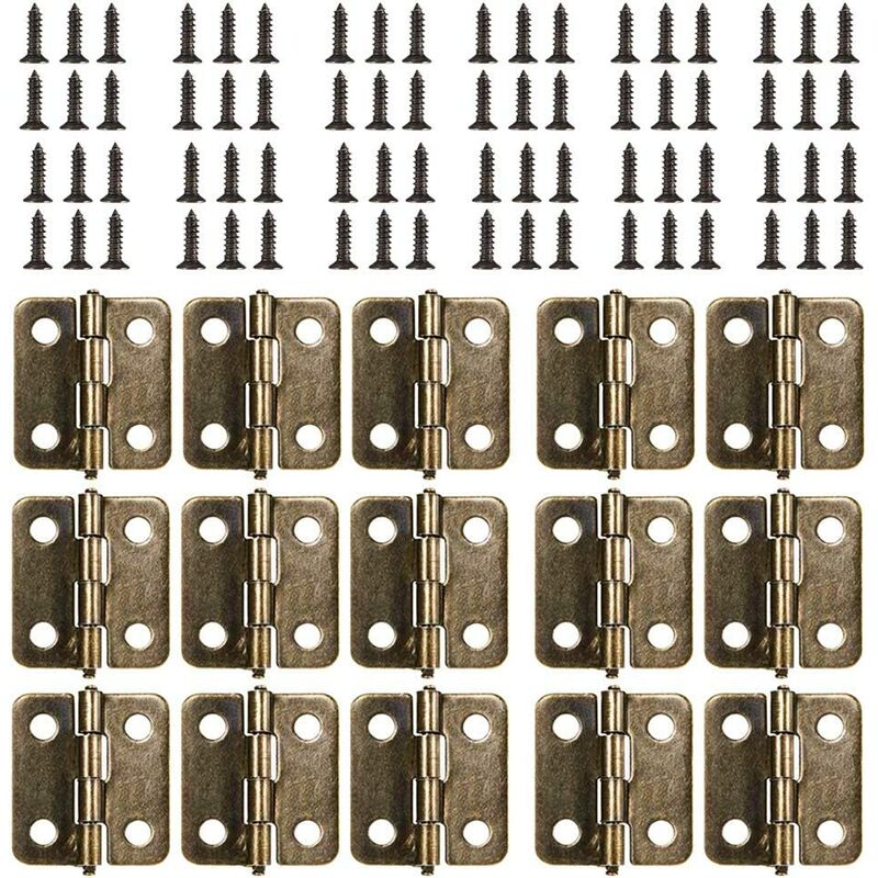 ci sono 50 mini cerniere e ogni cerniera con 4 viti. Un pacchetto include 50 mini cerniere in ottone antico, 200 viti di ricambio assortite in una piccola scatola di plastica trasparente, comoda da usare e da riporre. Materiale premium: realizzato in ferro, robusto e durevole.non facile da rompere, inoltre la superficie è rivestita con ottone anticato, che può prevenire la corrosione e la ruggine. Facile da installare: 4 fori di montaggio su ciascuna cerniera, viti di ricambio da 7 mm si adattano bene a questi fori di montaggio, comode e facili da usare con mini cerniere e viti di ricambio abbinate. Questa cerniera andrà bene con il tuo portagioie, scatola regalo e casa delle bambole. Può offrire molta praticità durante l'utilizzo. Ampia applicazione: colore bronzo antico, ottimo per realizzare piccoli progetti di falegnameria, portagioie in legno, case delle bambole, piccoli armadietti, cassetti e altri piccoli progetti. Il colore dell'articolo