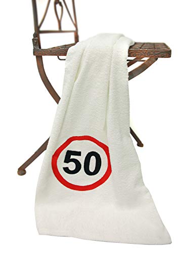 Regalo per 50 compleanno asciugamano con segnale stradale ricamato per uomo e donna - Un regalo di compleanno di 50 anni - Una pratica idea regalo per anniversario di 50 anni