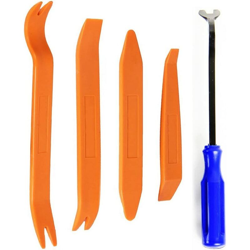 I set di strumenti automatici antigraffio progettati per la rimozione automatica dell'acciaio e la rimozione dell'acciaio semplificano la riparazione e l'installazione di clip automatiche, pannelli/audio/radio/cruscotto, elementi di fissaggio, rivetti e accessori simili. Realizzati in materiale plastico resistente, abbastanza robusto per un uso a lungo termine ma sufficientemente flessibile da proteggere la superficie del pannello dai graffi. Un altro spelafili in acciaio aiuta a lavorare in modo più efficiente e il versatile set di strumenti si ripaga da solo con un uso, fa risparmiare tempo e fa perdere tempo Kit di attrezzi professionale 5 molto utile per rimuovere finiture e modanature della carrozzeria di automobili. Un altro dispositivo di rimozione di elementi di fissaggio in acciaio aiuta a lavorare in modo più efficiente e il versatile set di strumenti si ripaga con un solo utilizzo, fa risparmiare tempo e non perdere tempo.