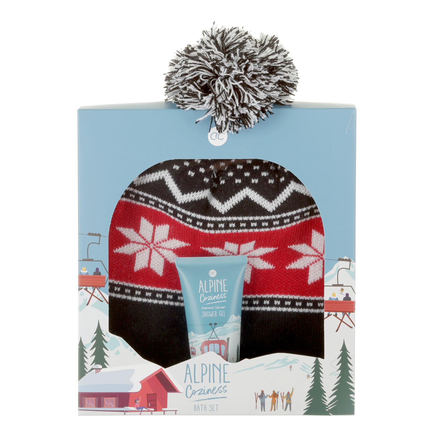 Originale set della linea Alpine Coziness, perfetto come idea regalo di Natale per amici, collegi e parenti particolarmente attenti alla cura del proprio corpo. Composto da un cappellino natalizio con pon pon lavorato a maglia e un gel doccia al profumo di menta piperita in tubetto da 60 ml, si presenta racchiuso all'interno di una confezione regalo ispirata alla montagna e allo sci. Un'idea semplice e poco impegnativa per scaldare chi vuoi bene con una preziosa coccola.