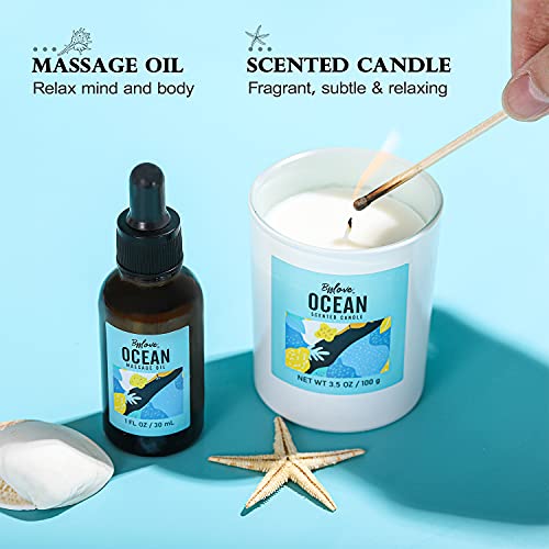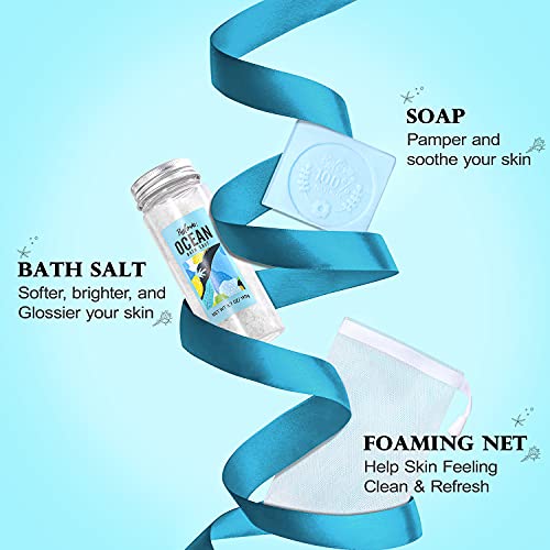 Set Regalo Donna, Confezione Regalo Profumo Oceano 6 PCS, Tazza da Viaggio, Olio da Massaggio, Sale da Bagno, Candela Profumata, Sapone, Rete di Schiuma, Utili Regali Uomo Natale Compleanno