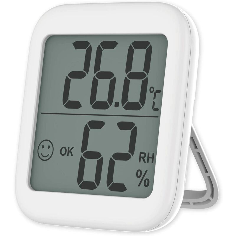 Facile da leggere - Termometro per interni Il carattere più grande mostra la temperatura e l'umidità attuali, anche se la distanza è lontana, puoi leggere il valore misurato, le espressioni sorridenti possono aiutarti ad alleviare lo stress in modo appropriato. [Display intelligente] L'igrometro ha tre modalità di posizionamento che possono cambiare tra °C / °F in qualsiasi momento;