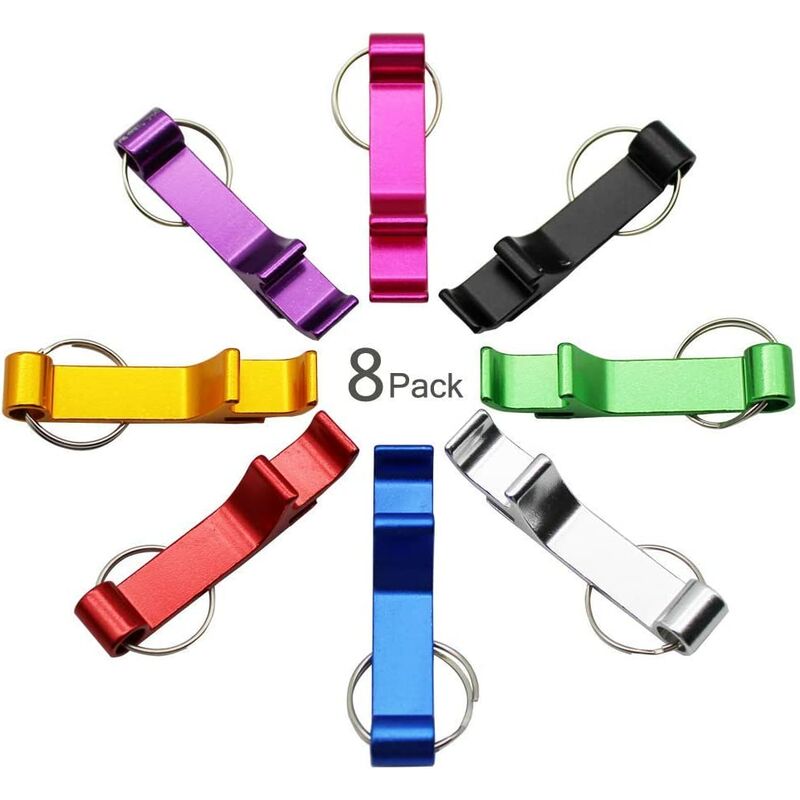 Questo apribottiglie è perfetto da indossare con il tuo portachiavi o portachiavi, è sempre a portata di mano quando vuoi aprire la bottiglia Materiale, lega di alluminio, facile da usare, il particolare design incide sulla resistenza all'usura 100% nuovo di zecca e di alta qualità, gambe per bottiglie e altri ganci per lattine Questo piccolo apribottiglie a mano è l'ideale per nasconderlo, tenerlo sulle chiavi con un portachiavi Ha molto stile e stai bene ovunque tu sia. Contenuto della confezione: 8 apribottiglie portachiavi.
