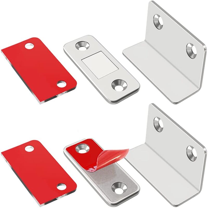 Design gapless: la piastra di chiusura a forma di L aggiornata assicura che questo fermo magnetico ultrasottile mantenga la porta chiusa ermeticamente senza spazi vuoti. La parte magnetica ha uno spessore di soli 4 mm con una forza magnetica di 2 kg. Robusto per contenere un'anta di un armadio, un cassetto, un coperchio, un'anta scorrevole o una doppia veneziana. Perfetto per le porte degli armadietti di una roulotte. Adesivo forte: il nastro biadesivo è abbastanza forte da tenere chiuso l'armadio senza praticare fori per le viti per l'avvitamento. (Nota: la colla fornita è rossa e bianca e verrà inviata in modo casuale.) Avrai anche viti per la tua installazione. Si prega di chiudere e aprire la porta dopo 12 ore in modo che la massa adesiva aderisca bene a questa superficie Magnete potente: questa calamita per porta contiene un magnete unico che mantiene le ante o i cassetti dell'armadio della cucina aperti in modo coerente e adatto per l'uso su la porta dove lo scrocco o il cardine