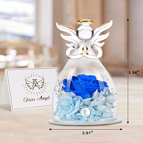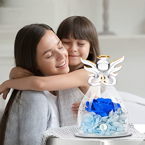 Regalo per mamma, angelo, compleanno, donna, fiori conservati, vera rosa da figlia, regalo di nozze (blu)