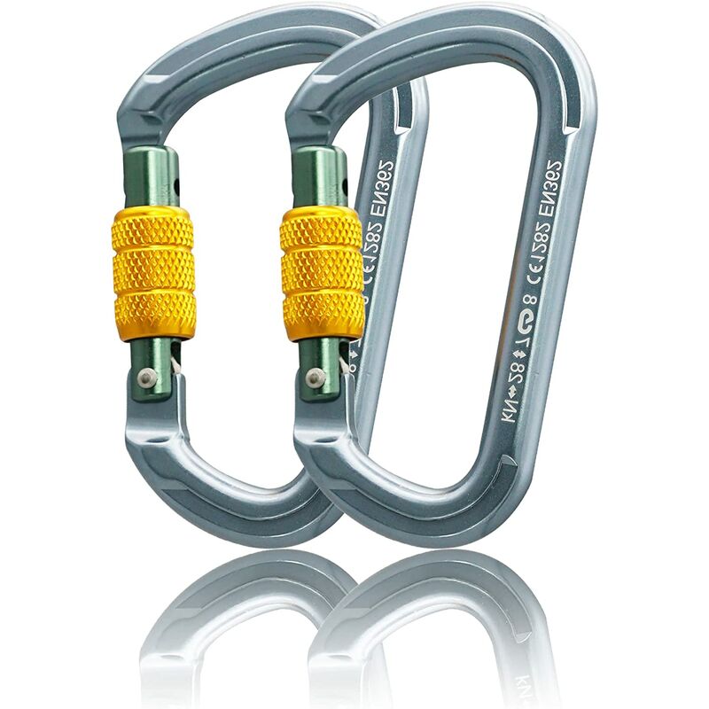 Certificazione CE - La serratura ha superato la certificazione standard CE EN362. La forza di rottura nominale dell'albero lungo di ciascuna serratura è di 25 KN (5644 lbs), la forza di rottura dell'albero corto è di 7 KN (1575 lbs) e la forza di rottura dello sblocco è di 8 KN (1800 lbs). 【Blocco a vite di sicurezza】 Il dado di sicurezza strutturato impedisce lo scivolamento accidentale del moschettone aumentando la resistenza della porta. La molla interna chiude automaticamente la porta con una mano. Con questa molla di bloccaggio aggiornata, il fermo di bloccaggio non si allenterà né farà scivolare nulla. 【Leggero e robusto】 Realizzato in materiale in lega di alluminio leggero e resistente per aerei. Durevole, resistente e pratico, non facile da staccare, non facile da rompere, pregevole fattura, non sbiadisce. 【Struttura compatta】 La dimensione di ciascun moschettone è 11,5x7,5x1,1 cm;