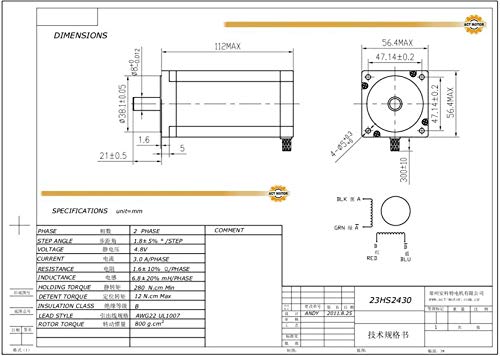 1 pz in regalo. ACT Motor GmbH, Nema23, motore passo-passo, 3 pz., 23HS2430 112mm 3Nm 3A φ8mm, 4 cavi