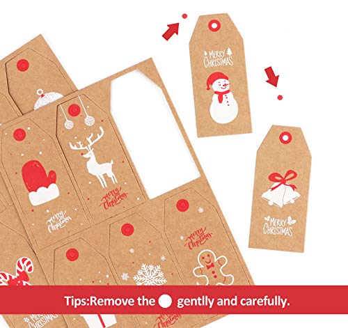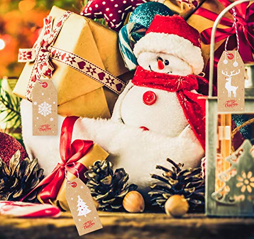 120 Tag regalo di Natale, Etichette in Carta Kraft da Appendere con Filo di Cotone da 10m e Spago di Iuta da 10m,Etichette Regalo Natalizie Kraft per Regali di Natale,Confezioni Regalo Fai da Te