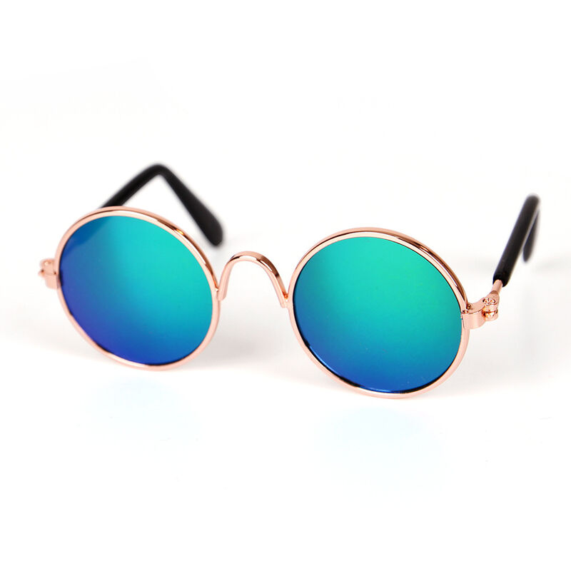 Occhiali fashion per rendere più attraenti gli animali domestici. Adatto per l'estate, molto alla moda. Montatura in metallo, leggero e resistente. Le aste delle gli occhiali sono realizzati in primavera, più comodi da indossare. Le migliori decorazioni per la fotografia di animali domestici.