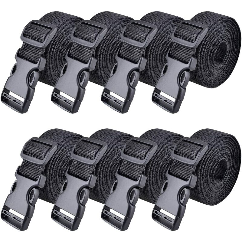 Materiale del cinturino: il cinturino è realizzato con un nuovo materiale in polipropilene 1000D, ecologico e resistente all'usura. La superficie non è liscia (antiscivolo). 1,5 mm d'épaisseur, haute densité Nouveau matériau POM écologique, épais et durable, noir Capacité de charge - La sangle de 2,5 cm de large peut supporter environ 50 kg de tension PRATIQUE - Appuyez sur les deux côtés de la boucle pour libérer la sangle pour une utilisation à une main Application - Les sangles de bagages longues et larges sont faciles à usare. Può essere utilizzato per impacchettare, fissare, allungare, comprimere tende, sacchi a pelo, merci, bagagli, ecc. non scivola Ambito di consegna: Cinturini con fibbia, 8 pezzi, 1m*25mm, neri