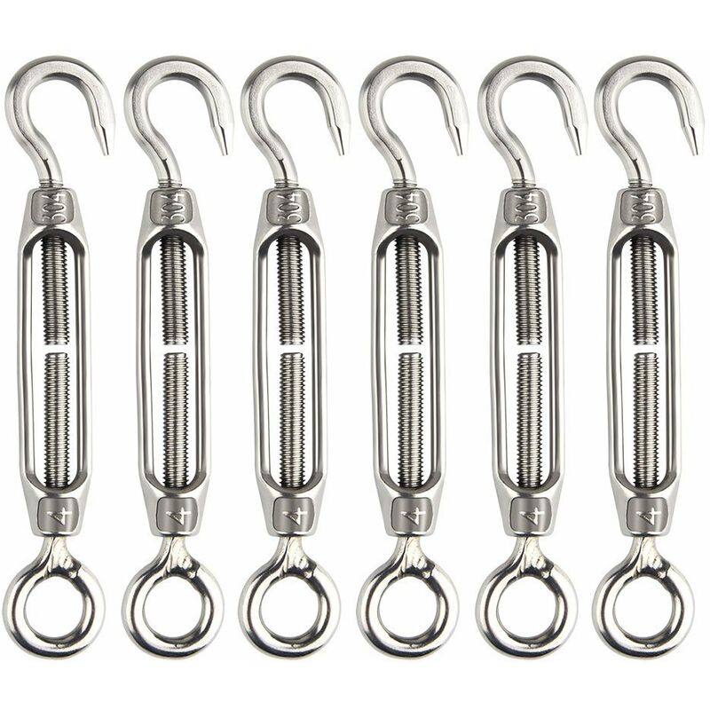 Digita: Gancio tenditore M4 OC (gancio e occhiello) Pacchetto: Gancio tenditore 6 pezzi M4 Materiale: acciaio inossidabile 304, resistente all'acqua, alla ruggine e alla corrosione Applicazione: adatto per tendere la fune e regolare l'effetto elastico;