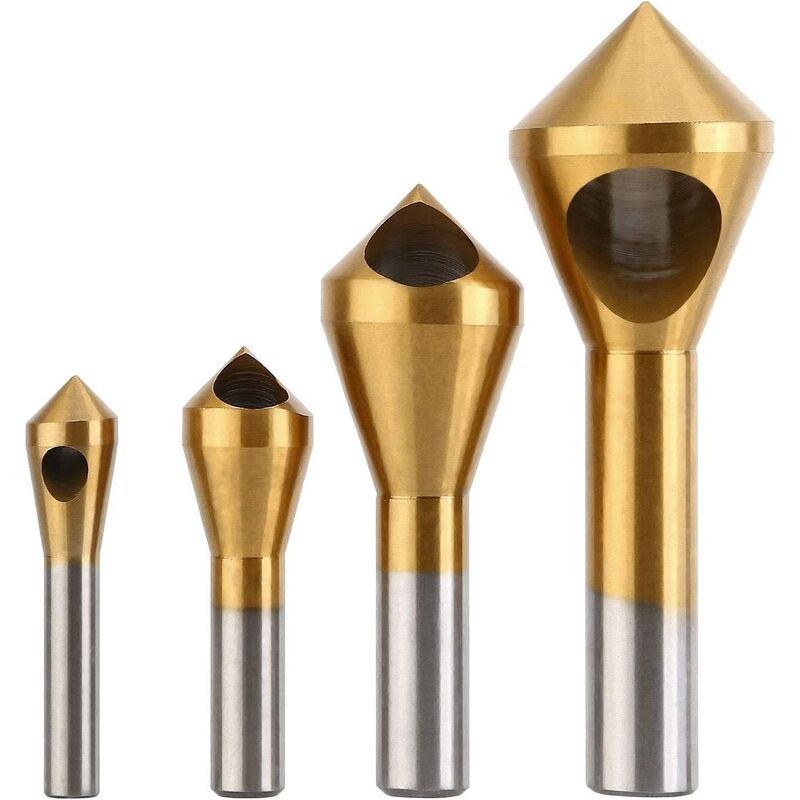 4 tipi di specifiche - 2-5 mm, 5-10 mm, 10-15 mm, 15-20 mm HSS 4241 under 65 HRC - HSS 4241, elevata durezza e resistenza all'usura, alta velocità di taglio, spigoli vivi. Per materiali con durezza inferiore a 65 HRC. Design Design a 90 gradi - La punta svasata presenta i vantaggi di una concentricità dello smusso resistente all'usura e di lunga durata, bella smussatura, ecc. Design Design angolare - Resistenza alla ruggine e alla corrosione. La resistenza e l'affilatura dei taglienti hanno aumentato l'uso di un grande diametro del nucleo, la rigidità dell'utensile, la capacità di fresatura e di taglio. Per tutte le punte comuni: punte di Hilti, Bosch, Makita, Hitachi, Fein, AEG, Metabo, DeWalt, Schwarz & Decker, Brüder Mannesmann, Kress, Wolfcraft, Einhell, Milwaukee, Flex e molti altri (usa olio antiruggine). Numero di invii: 4 pezzi
