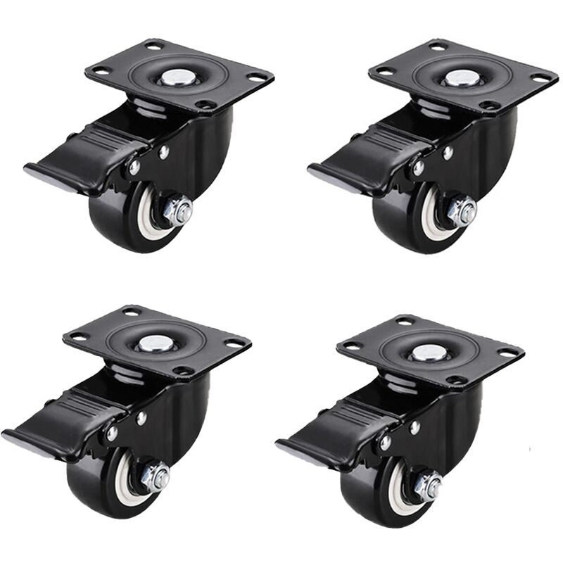 Risparmia energia e riduci lo sforzo sulla schiena: stai spingendo o trasportando i tuoi mobili? Sposta carichi pesanti, riduci lo stress sulla schiena e risparmia energia installando queste nuove rotelle. Scopri come spostare i tuoi mobili con facilità e facilità. Ruote per mobili robuste e affidabili (set di 4): le rotelle per mobili sono realizzate con materiali di alta qualità e hanno un design robusto e stabile, che le rende le più resistenti nella loro classe. La ruota girevole può ruotare in modo fluido e silenzioso di 360 gradi. Flessibilità e sicurezza: le robuste ruote in poliuretano (PU) combinano l'elasticità delle ruote in gomma con la robustezza e la durata delle ruote in metallo. Le ruote con freno sono adatte a tutti i tipi di pavimento. La capacità di carico è di 200 kg (50 kg per giro). Goditi un rotolamento fluido e silenzioso: le ruote per mobili hanno cuscinetti interni per un rotolamento fluido e la superficie liscia impedisce che capelli, detriti e sabbia si