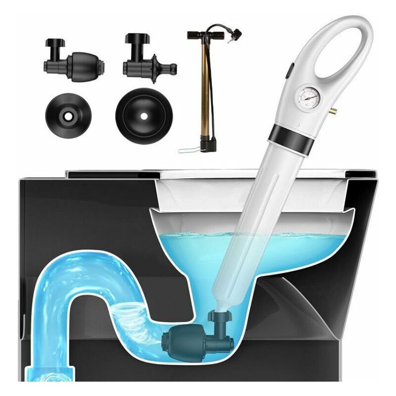 Sblocco rapido ed efficiente - Rispetto ai tradizionali dispositivi di sblocco, il nostro prodotto adotta una potente pompa ad alta pressione. Con la potenza dell'aria compressa ad alta pressione, questo bocchettone per WC è perfetto per pulire rapidamente e facilmente scarichi e tubi inquinati e intasati e l'ugello può essere sigillato per impedire il riflusso dell'acqua inquinata. 【Alto Materiali di qualità: realizzato in ABS, PVC, acciaio inossidabile e altri materiali di alta qualità, questo scolapiatti è durevole e resistente alla corrosione. Può essere pulito spruzzando detersivo dopo l'uso. I detriti attaccati al pistone possono essere facilmente rimossi in un minuto. 【Pressione forte e regolabile】 Il turbocompressore integrato può generare una forte pressione (fino a 0,6 MPa). La pressione può essere regolata anche dall'aria compressa in base alle diverse esigenze, che è più efficace rispetto ai prodotti tradizionali.Ti permette di pulire facilmente a casa senza chiamare