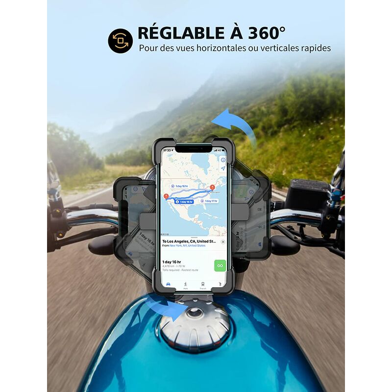 Protezione stabile e antiurto: Dì addio ai portacellulari in plastica per moto che si rompono facilmente. Questo supporto per telefono da moto è dotato di 4 morsetti in acciaio inossidabile, robusti per tenere saldamente il telefono e resistere a vibrazioni, movimenti improvvisi e urti. 4 artigli angolari resistenti all'usura, dotati di imbottitura interna in PU antiscivolo, prevengono efficacemente i graffi del telefono. Design unico staccabile: Sostituendo il design monopezzo, il supporto per telefono da bici adotta una base di montaggio rimovibile. Puoi rimuovere il telefono dalla bicicletta per inviare e-mail, effettuare chiamate e scattare selfie durante un viaggio in bicicletta senza smontare l'intero supporto del telefono. Rotazione libera a 360° e nessun blocco: Puoi regolare liberamente il supporto del telefono della bici all'angolo di visione perfetto per controllare il chilometraggio o le mappe sulla bici. L'ingegnoso design aperto consente l'accesso completo allo schermo