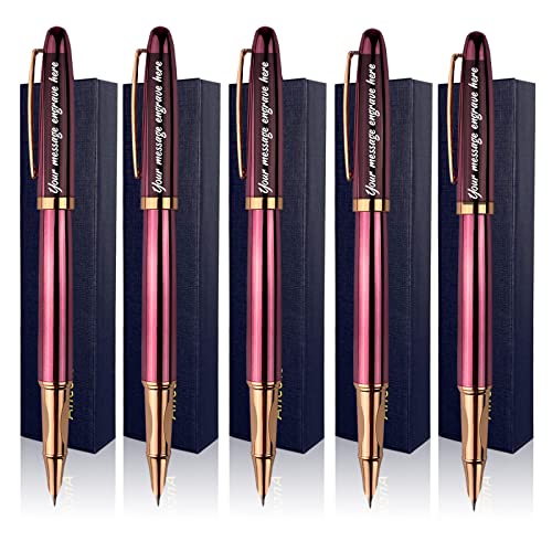 Set regalo per ufficio personalizzato con penne stilografiche con 5 confezioni regalo 10 cartucce d'inchiostro extra - Inciso con i nomi dei tuoi messaggi, regalo per colleghi di lavoro amici