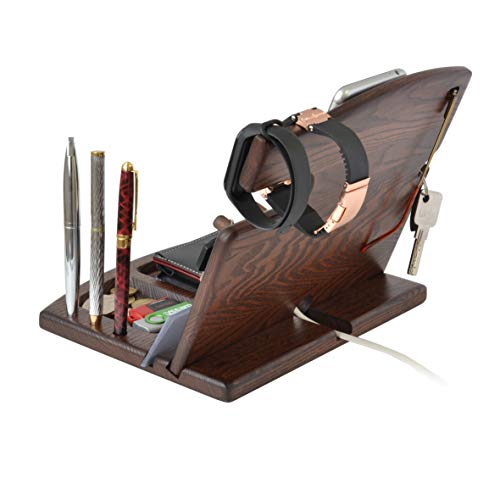 Regalo da Uomo Supporto per telefono in legno Docking Station per Telefono Natale Regalo da Uomo Marito Anniversario Regalo per papà Supporto da comodino Legno massello in frassino (Wenge)