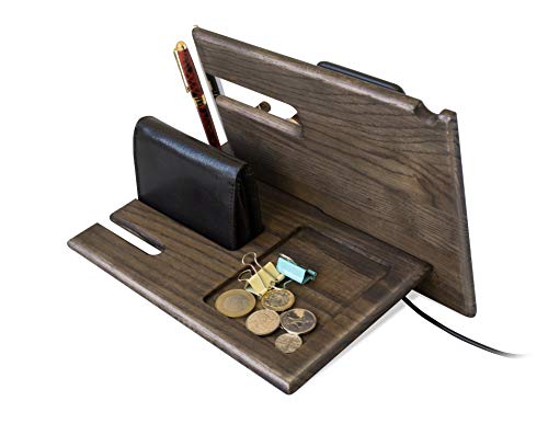 Regalo da Uomo Supporto per telefono in legno con ganci Docking Station in legno per Telefono Natale Regalo da Uomo regalo per Marito, per papà Supporto da comodino massello in frassino (Wenge)