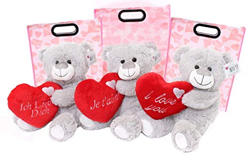 Regalo di San Valentino - Morbido orsacchiotto in peluche con cuore con ricamo "Ich Lieben Dich" + sacchetto regalo rosa "With love" - regalo per San Valentino per adulti
