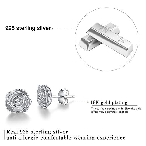 ✦ Regalo San Valentino Per Lei ✦ Springlight Orecchini Donna Argento 925 orecchini di rosa orecchini di fiori, Gioielli fatti a mano da regalo donna san valentino per lei.(White gold)