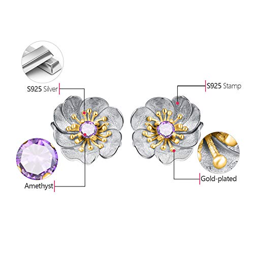 ✦ Regalo San Valentino Per Lei ✦ Springlight Orecchini Donna Argento 925 Orecchini a bottone con fiore di anemone in oro 18 carati Gioielli regalo donna san valentino per lei.(Silver -Gold -Purple)