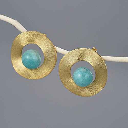 ✦ Regalo San Valentino Per Lei ✦ Springlight Orecchini Donna Argento 925 Orecchini rotondi irregolari con pietre preziose naturali Gioielli regalo donna san valentino per lei.(Gold - Amazonite)