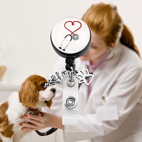 Regalo veterinario Stetoscopio Medico Retrattile Badge Holder Reel Clip Veterinario Studente Regalo Assistente Veterinario Gioielli Pet Proprietario di salvataggio Gioielli, Small, Metallo,
