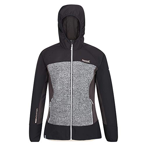 Regatta Women's Garn - Giacca in softshell con cappuccio, da donna, elasticizzata, ultra estensibile e antivento, Donna, RWL197, Black/Ash, FR: 2XL (Taille Fabricant: 20)