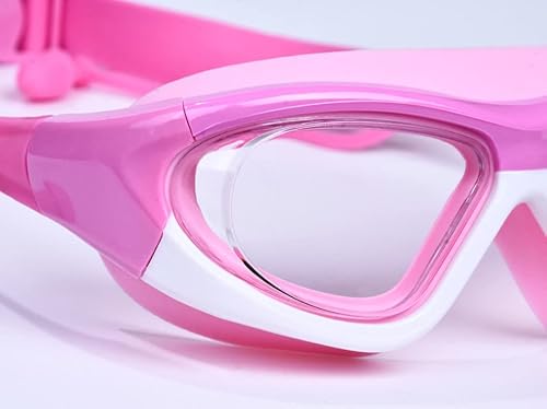 REGF Occhiali da nuoto per bambini, anti-appannamento per ragazzi e ragazze, impermeabili, lenti protettive, occhiali da nuoto con montatura grande, comodi tappi per le orecchie in silicone (rosa)