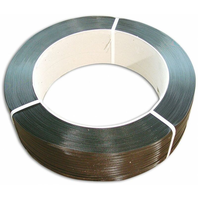 Per tenditori manuali, atossica e totalmente riciclabile, superficie goffrata, ad altissimo carico di rottura, resistente e duratura, misura mm. 15x0,5, lunghezza bobina mt. 2000, Ø interno bobina cm. 40, Ø esterno bobina cm. 51, colore nero.