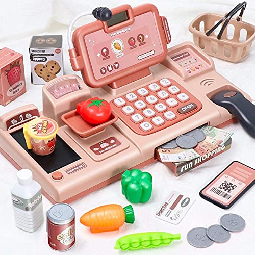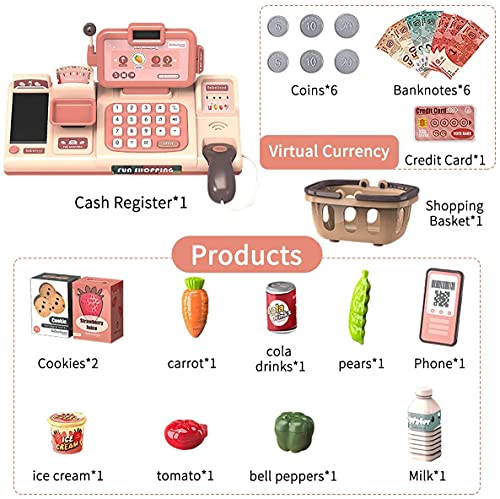 NC - Registratore di cassa elettronico fino a far finta di giocare al supermercato, con registratore di cassa intelligente con scanner, cibo, cestino per la spesa per bambini (rosa)