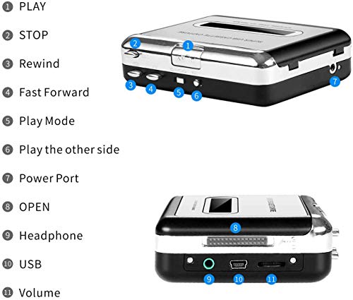 Registratore a Cassetta - Walkman e Convertitore di Audiocassette in File Digitali MP3 Via USB,Compatibile Mac e Windows