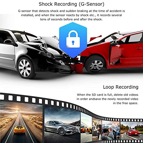 ✅[FOTOCAMERA IN VEICOLO ED ESTERNO]➡Fotocamera anteriore da 12 megapixel di alta qualità 1080P (grandangolo 140 °) e fotocamera per auto (grandangolo 120 °) anteriore e posteriore integrate. È possibile registrare la voce durante la guida perché ha un microfono / altoparlante incorporato, ma è possibile ottenere informazioni più dettagliate in caso di emergenza. (Scheda SD non inclusa)