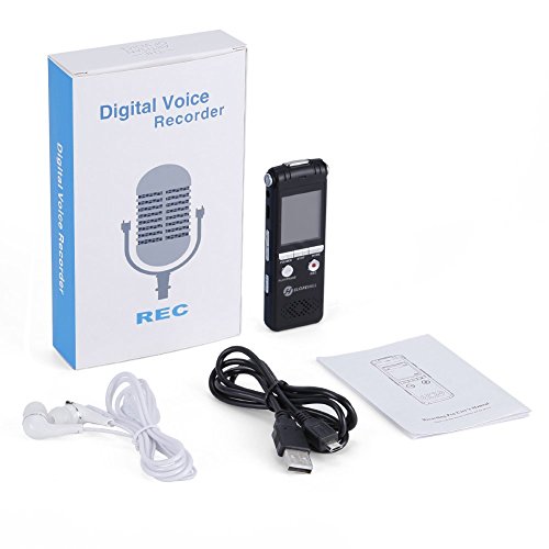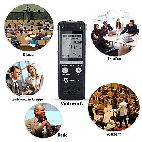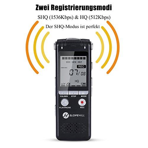 Registratore Vocale Digitale, Slopehill 1536kbps PCM 8GB Supporta TF Scheda Lettore con LCD Display Regolazione della Velocità di Riproduzione Costruito con MP3 in Lega di Zinco -Nero