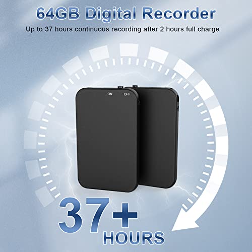 【16GB & 37 Ore Batteria Lunga Durata】Il registratore audio da 16GB di memoria interna ha una grande batteria da 200mAh. Con la nostra esclusiva tecnologia di risparmio energetico e di risparmio di energia, hai fino a 37 ore di registrazione continua a 384kbps dopo 2 ore di carica