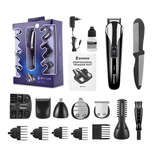 Regolabarba Uomo Tagliacapelli Professionale Elettrico Barba e Capelli Rasoio Corpo Rifinitore Precisione per Capelli, Barba, Corpo, Naso e Orecchie 6 in 1 Kit,con Lama rotante in Acciaio Inossidabile