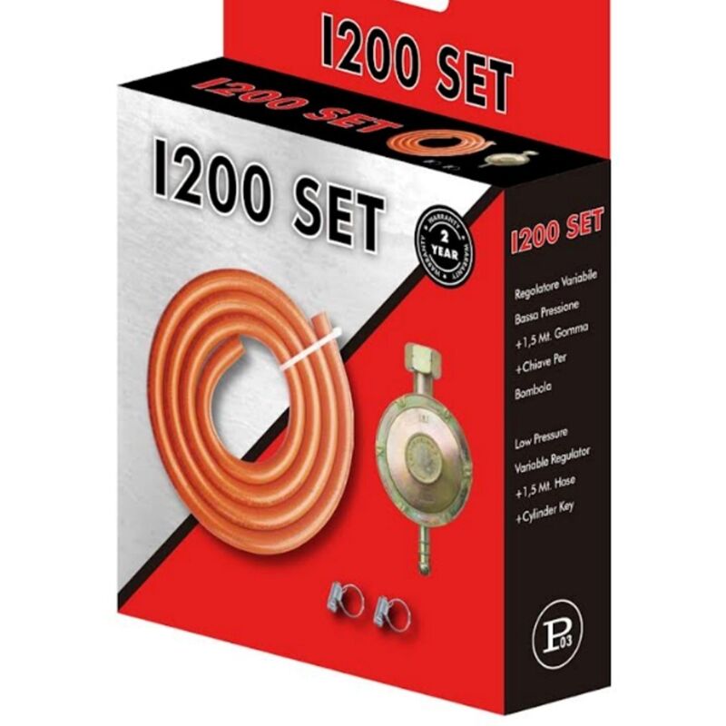 Setregolatore bassa pressione 1kg taratura variabile per cucine fornelli 1,5m tubo gomma gpl 2 fascette