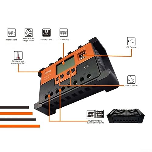 Display LCD intuitivo: con il suo display LCD di facile lettura, è possibile monitorare facilmente lo stato di carica, la tensione della batteria e altre informazioni importanti. Ciò consente di avere il controllo completo sul sistema di energia solare.