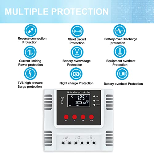 Y&H Regolatore di carica solare da 40 A, 12 V, 24 V, 48 V, display LCD, parametri di carica e scarica, comunicazione WiFi, per carica al piombo acido/litio