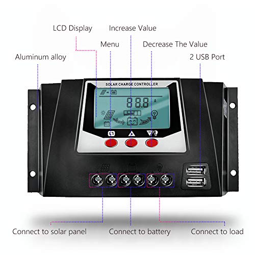 ULTRA-PROTEZIONE: il nostro regolatore di carica è progettato per fornire la massima sicurezza all'esperienza del cliente: Protezione da sovraccarico / cortocircuito, Protezione da sovraccarico / sovratensione / bassa tensione, Protezione da collegamento inverso per pannello solare / batteria e inversione batteria Protezione di scarico. Ha anche una funzione di protezione corrente di carica.