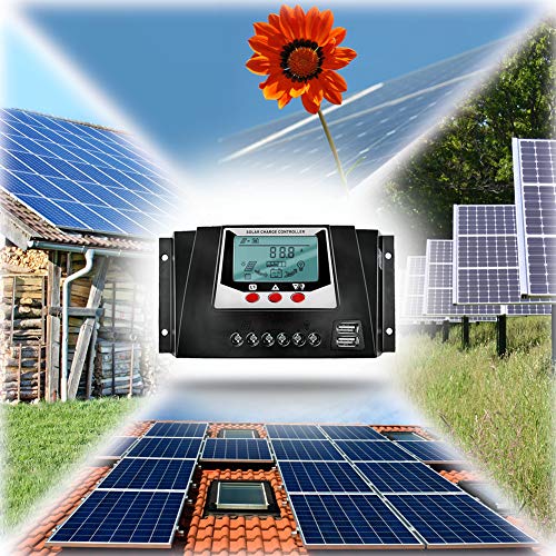 Regolatore di Carica Solare 40A 12V 24 V, 100 V PV Input Regolatori PWM con Doppio Monitor LCD retroilluminato con Uscita USB 5V con compensazione della Temperatura