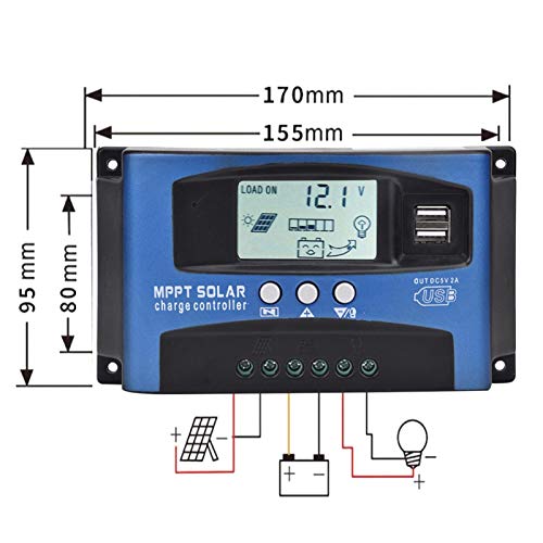 Regolatore di carica solare, regolatore di pannello solare MPPT 12V/24V 30-100A, rilevamento automatico della messa a fuoco, gestione della carica trifase, tubo antiriflusso MoS a due vie(100A)