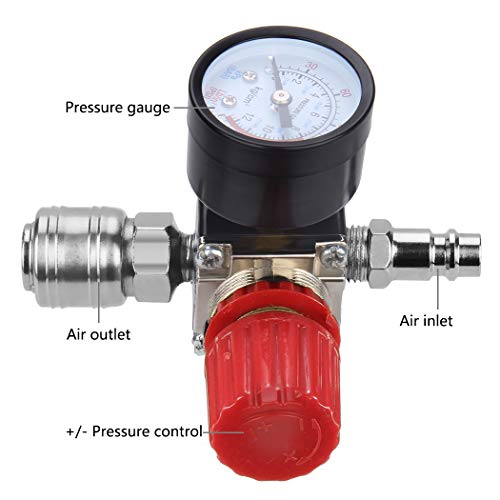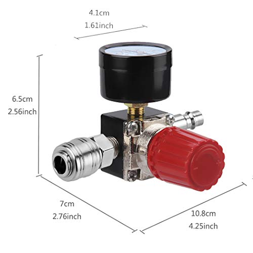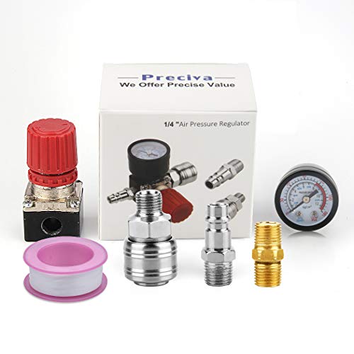 1/4 Regolatore di Pressione Aria - Preciva standard UE Valvola Compressore Aria Interruttore valvola con manometro 175 PSI per compressore d' aria, Compressore d' aria, Rosso (4 Fori)