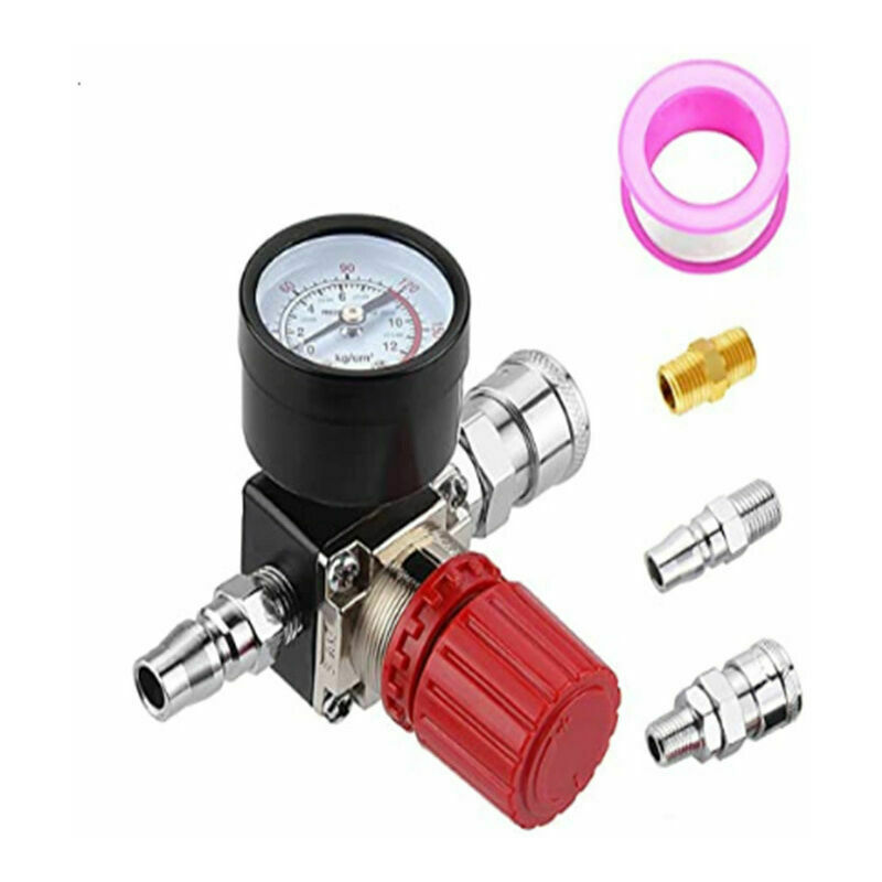 Arrestare il compressore d'aria. Caratteristica: Durevole e pratico Facile da installare e rimuovere utilizzando il barometro, i dati possono essere impostati e letti Manopola con valvola per regolare la pressione dell'aria secondo necessità< br/> Può aiutare a risparmiare energia Contenuto della confezione: 1 x regolatore di pressione (con manometro)