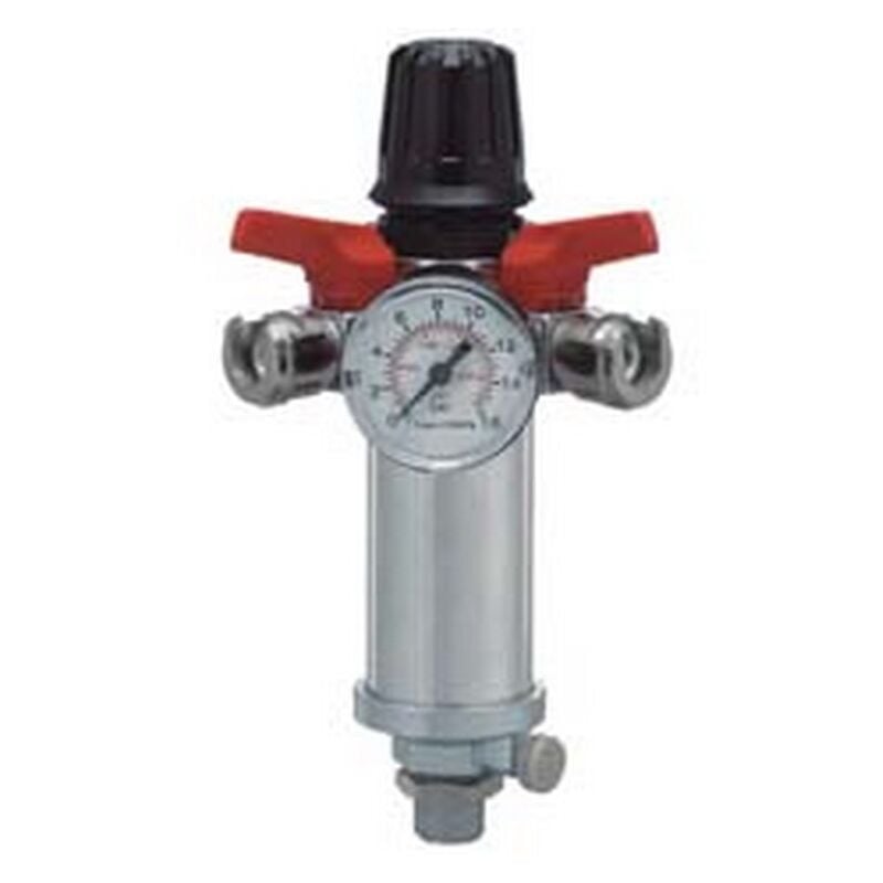 Corpo in alluminio sabbiato - regolatore di pressione con due rubinetti di linea - manometro ? 40 mm. - scala 0-16 bar, 0-230 psi - questi filtri-regolatori riuniscono in una singola unit? la funzione di regolatore di pressione e di gruppo filtrante - pro